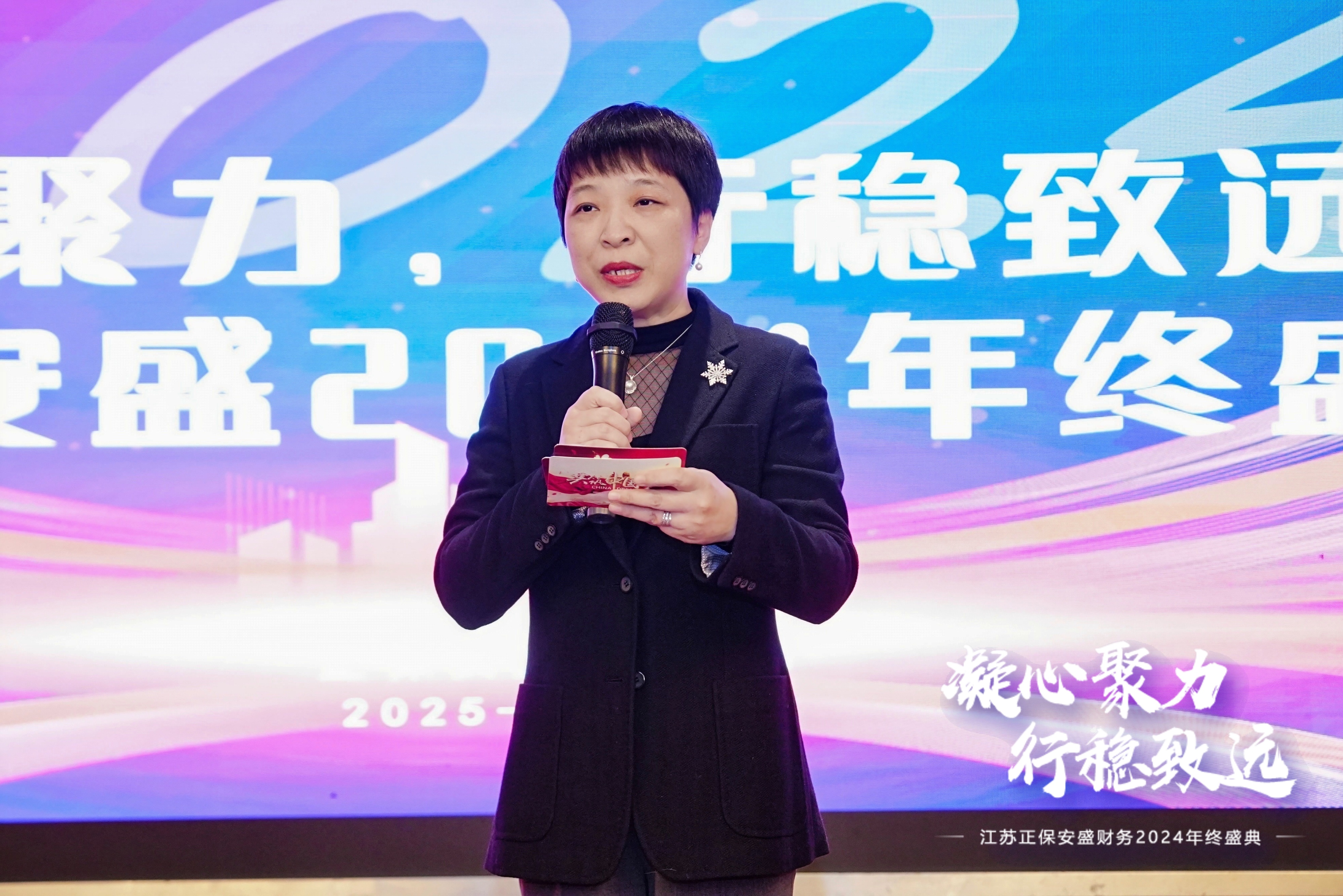 年會上半場由正保安盛總經(jīng)理助理張俊梅主持。隨著主持人的隆重開場,各個部門負責人依次登臺,就2024年度部門工作進行了全面而細致的總結(jié),并展望2025年發(fā)展規(guī)劃與美好愿景。